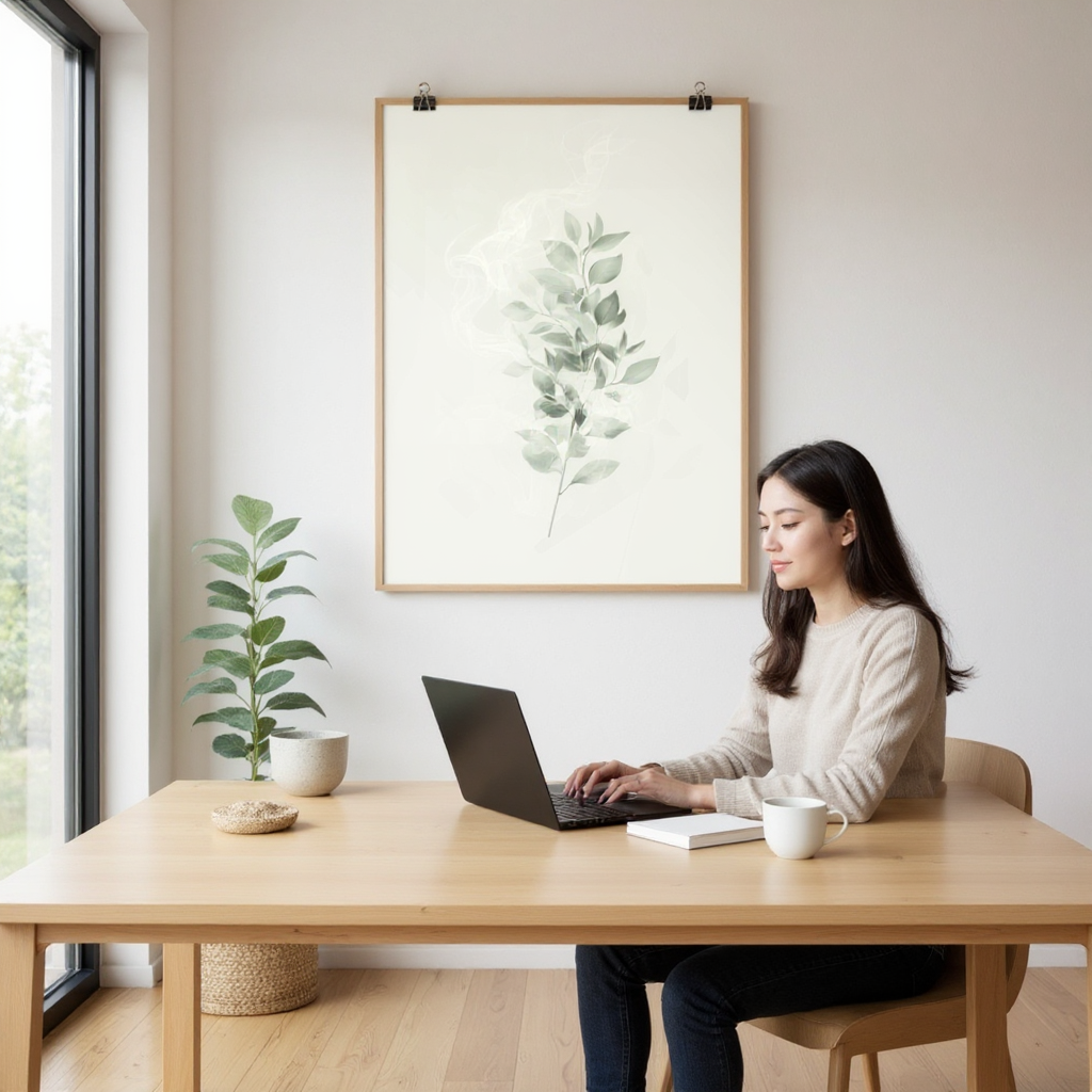 Skapa ett lugnt, samlat uttryck i rummet. Motivet med mjuka former och balanserade färger ger ett rofyllt fokus som passar lika bra i vardagsrum som i sovrum eller arbetsplats. Tryckt på högkvalitativt, matt konstpapper med skarpa detaljer och färger som håller över tid. En enkel detalj med stor effekt: häng den där du vill sänka tempot och låta rummet kännas mer harmoniskt.