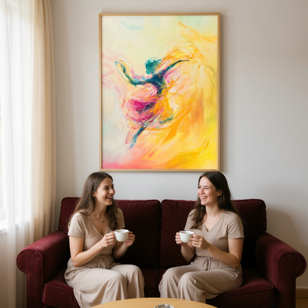 Skapa ett lugnt, samlat uttryck i rummet. Motivet med mjuka former och balanserade färger ger ett rofyllt fokus som passar lika bra i vardagsrum som i sovrum eller arbetsplats. Tryckt på högkvalitativt, matt konstpapper med skarpa detaljer och färger som håller över tid. En enkel detalj med stor effekt: häng den där du vill sänka tempot och låta rummet kännas mer harmoniskt.